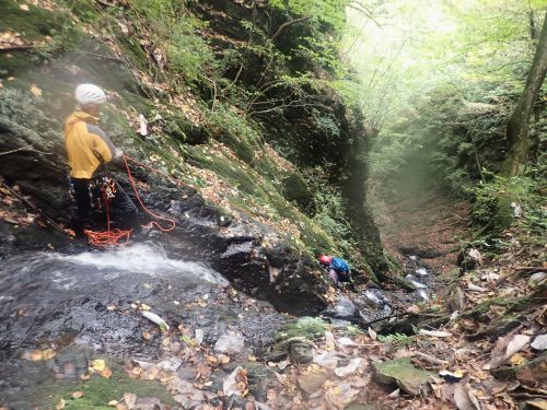コースタイム:小金沢公園駐車場(9:20)-入渓点(9:26)-二俣(9:43-9:50)-右俣脱渓点(12:58-13:03)-シンナシ尾根 (13:17)-左俣(13:35-13:50)-大峰山道(14:06)-駐車場(15:08)